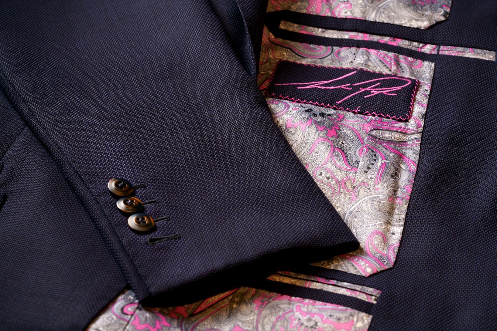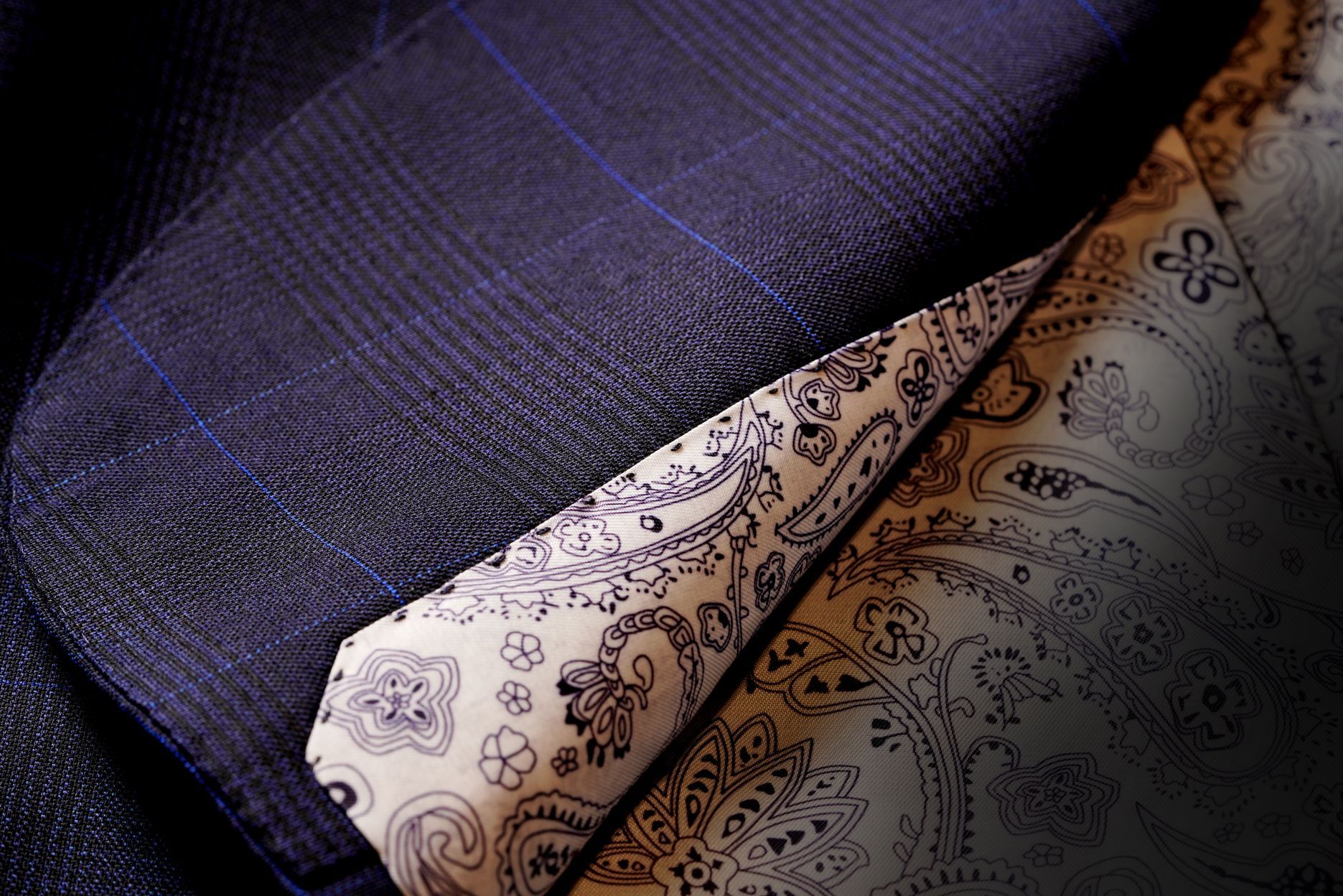 The floating canvas interior of our suits requires a unique artisan skill and experience, as our garments are produced with natural materials such as horse hairs and camel fibres and strict avoidance of the use of adhesives or synthetic glues, which other tailors adapt to fast-track production.
